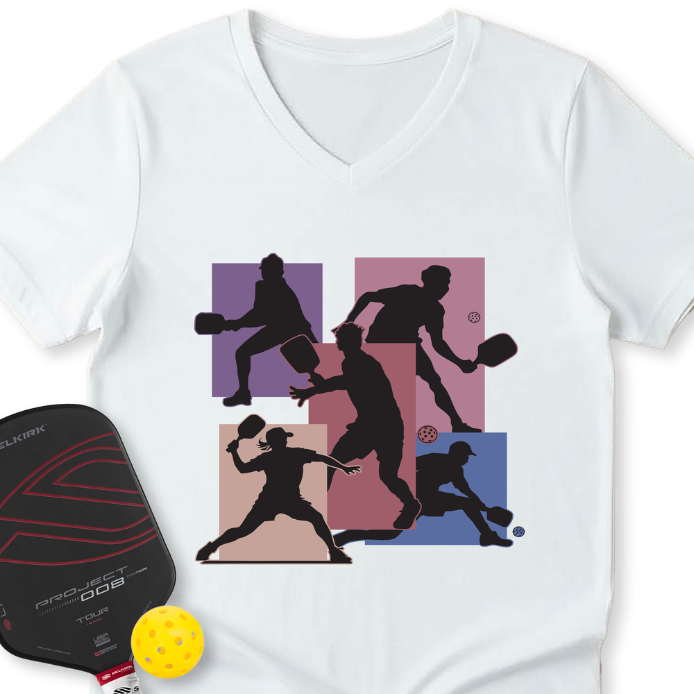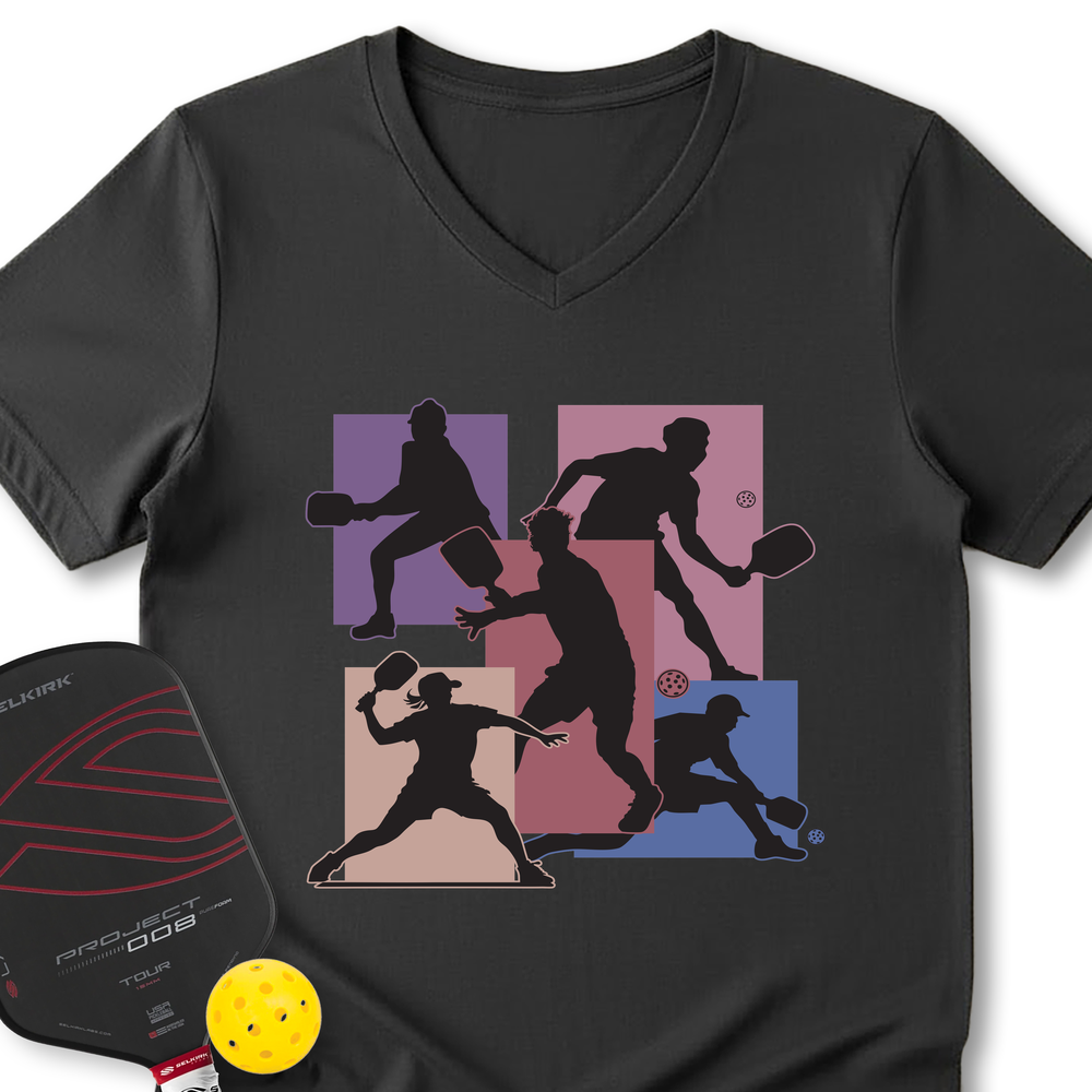 Silhouette Players Pickleball Graphic V-Neck T-Shirt - Picklechillz